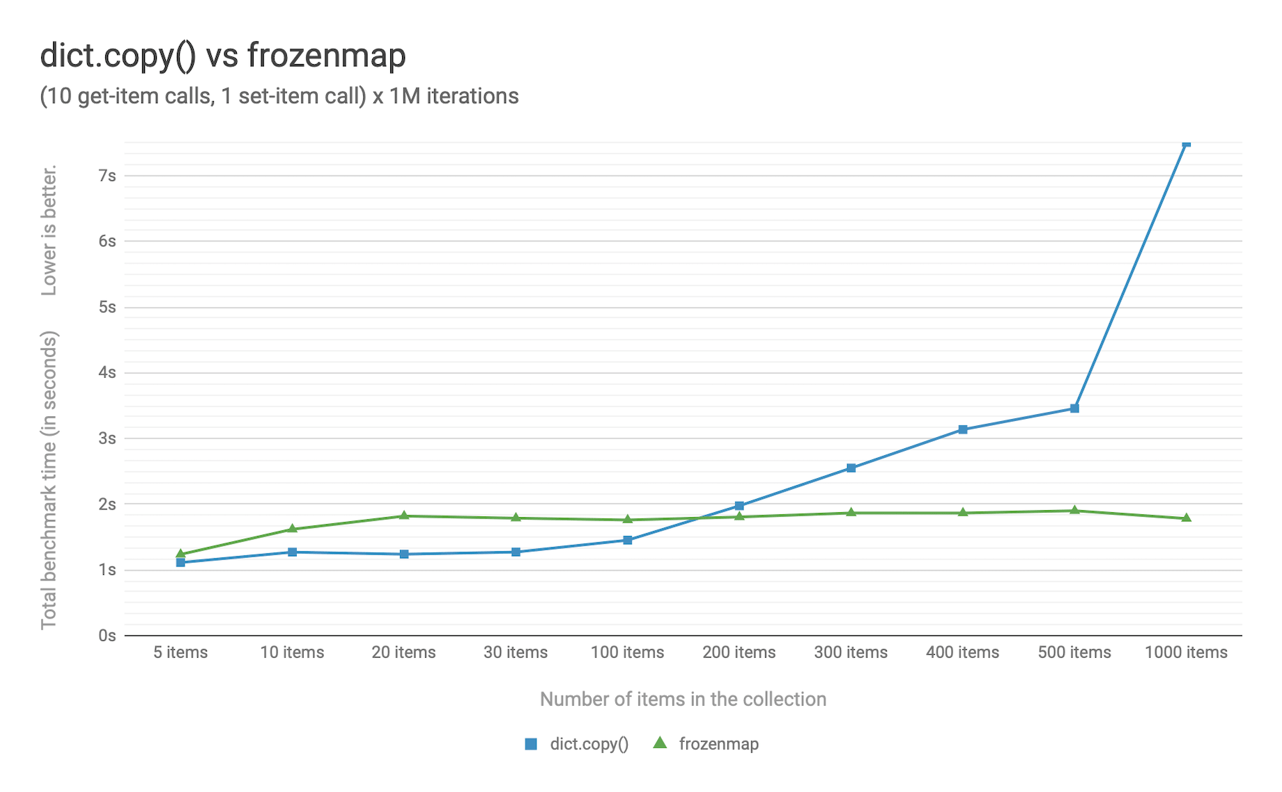 • dict.copy() becomes less efficient when using around 100-200 items.